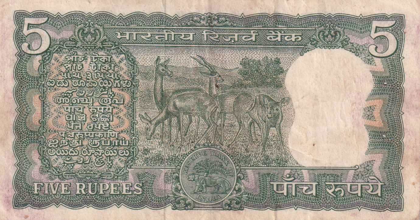 5 RUPEES (4 Deer) GOVERNOR S. JAGANNATHAN RARE NOTE