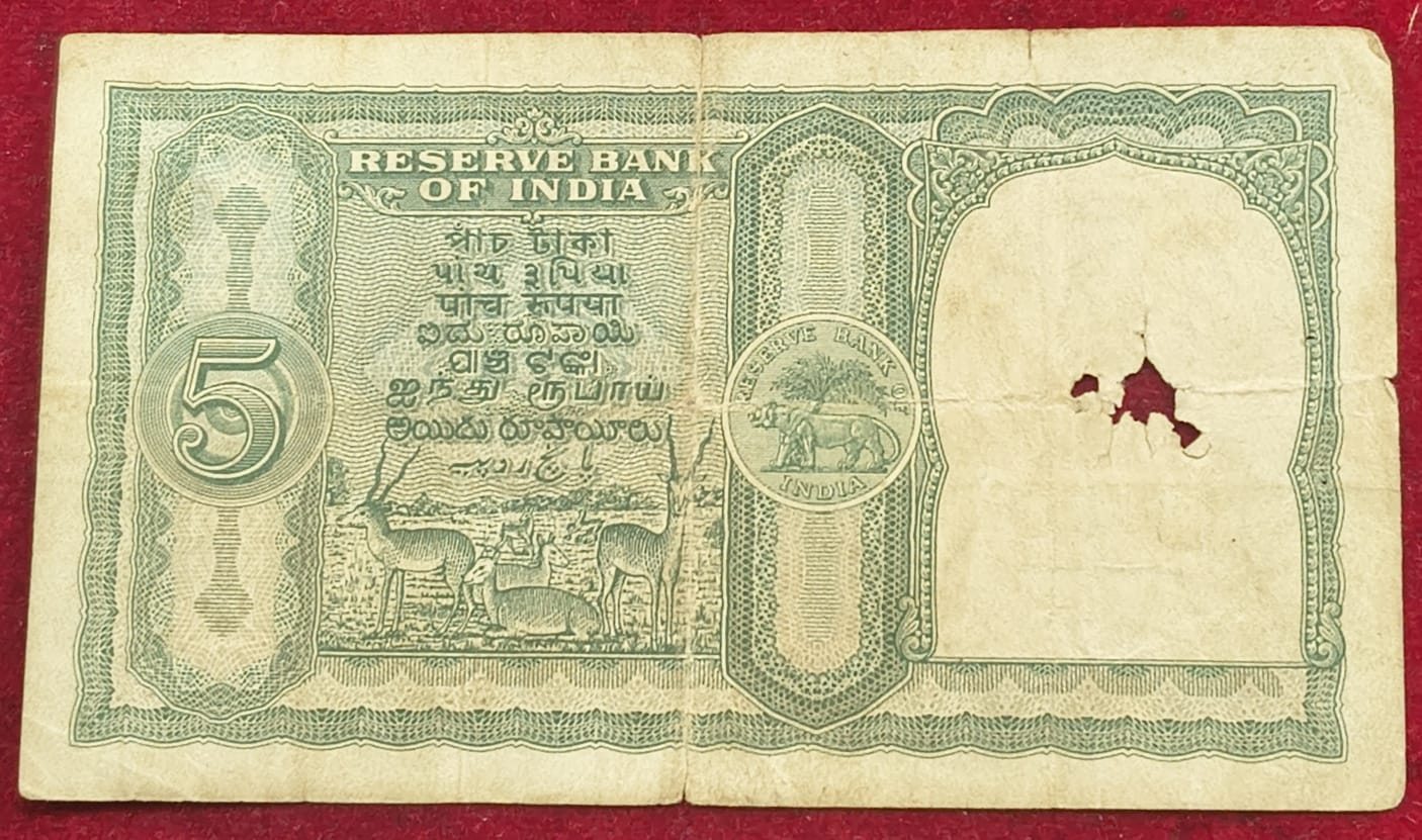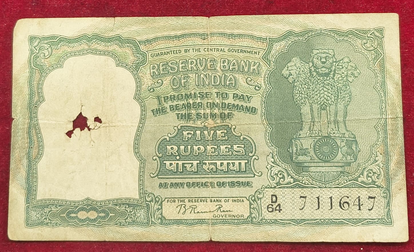 5 RUPEES FAFADA GOVERNOR B. RAMA RAO LOW CONDITION RARE NOTE