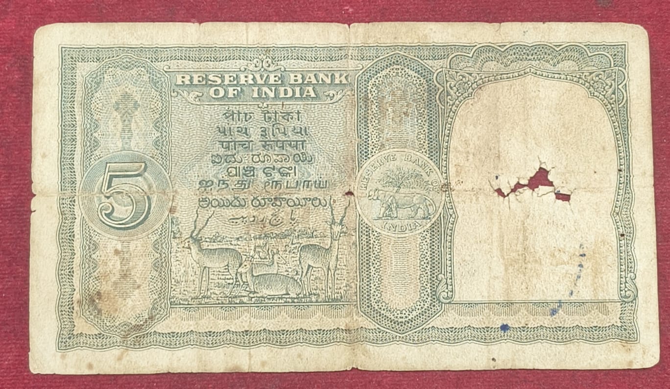 5 RUPEES FAFADA GOVERNOR B. RAMA RAO LOW CONDITION RARE NOTE