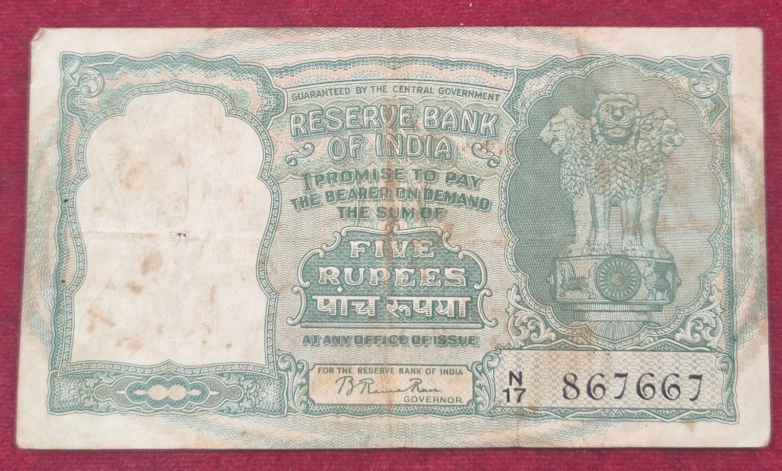 5 RUPEES FAFADA GOVERNOR B. RAMA RAO RARE NOTE