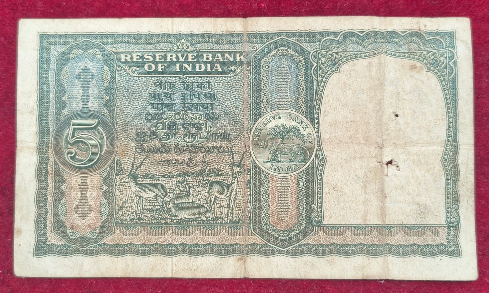 5 RUPEES FAFADA GOVERNOR B. RAMA RAO RARE NOTE