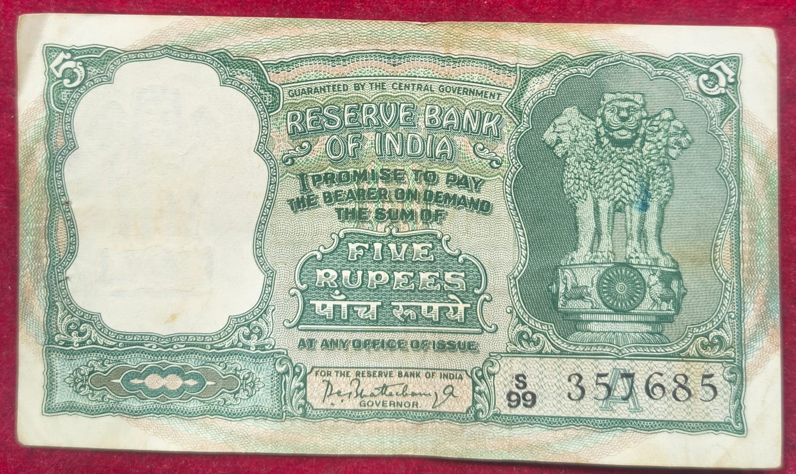 5 RUPEES FAFADA GOVERNOR P.C BHATTACHARYA RARE NOTE