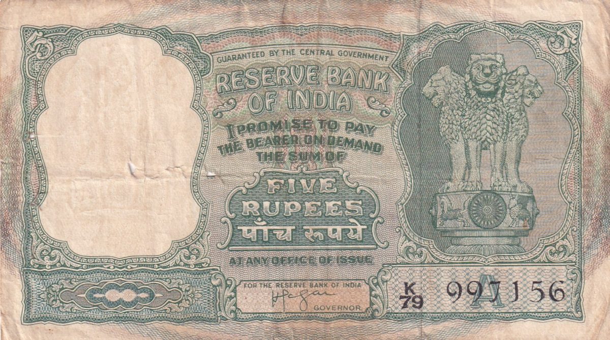 5 RUPEES FAFDA OLD ISSUE BIG SIZE GOVERNOR IYENGAR NOTE