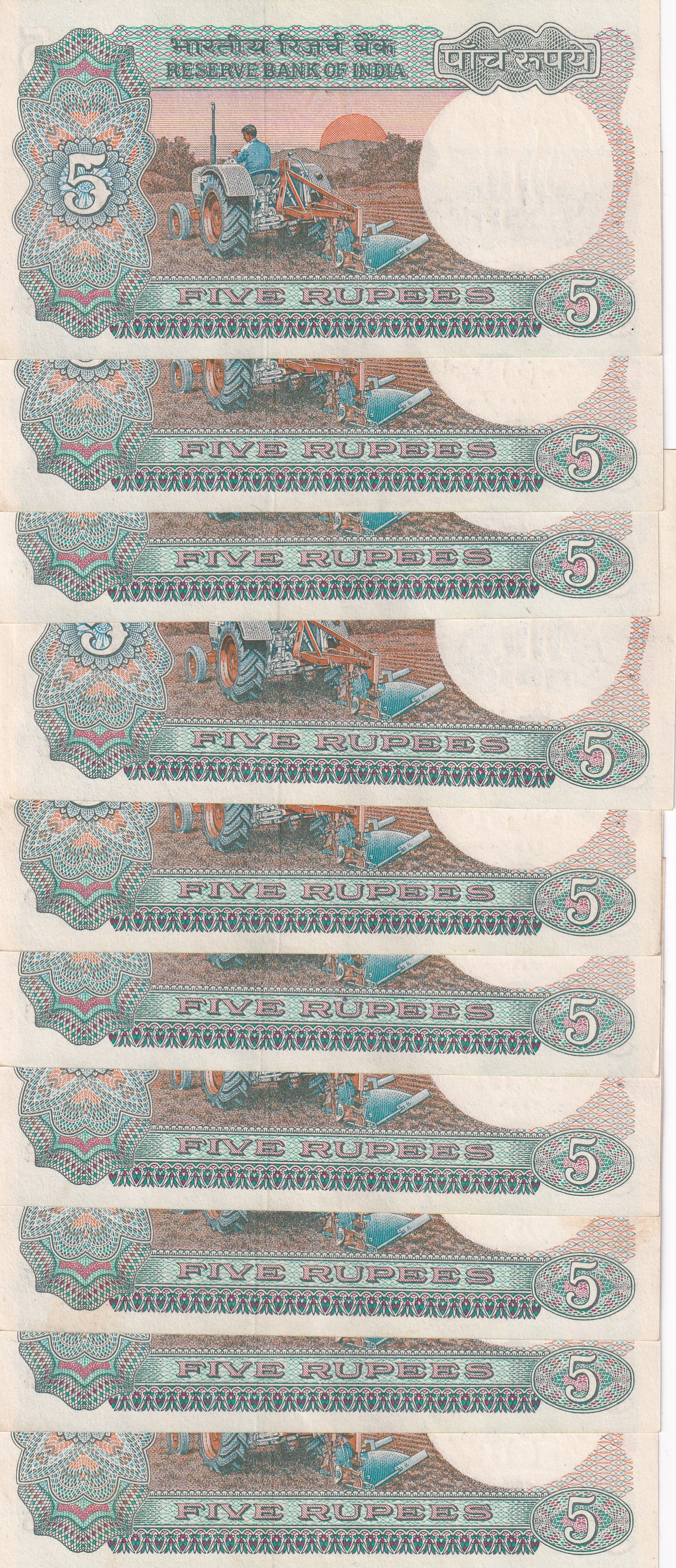 5 RUPEES GOVERNOR M.NARSHIMAN (10 PCS LOTT) UNC RARE NOTE