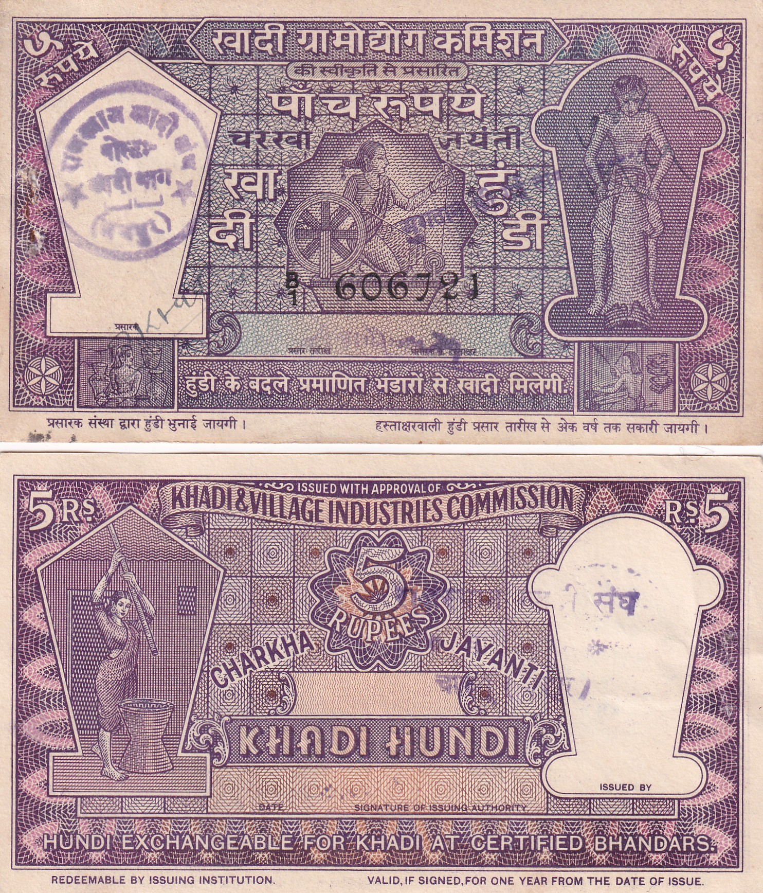 5 Rupees Khadi Charkha Hundi old 100 % Original