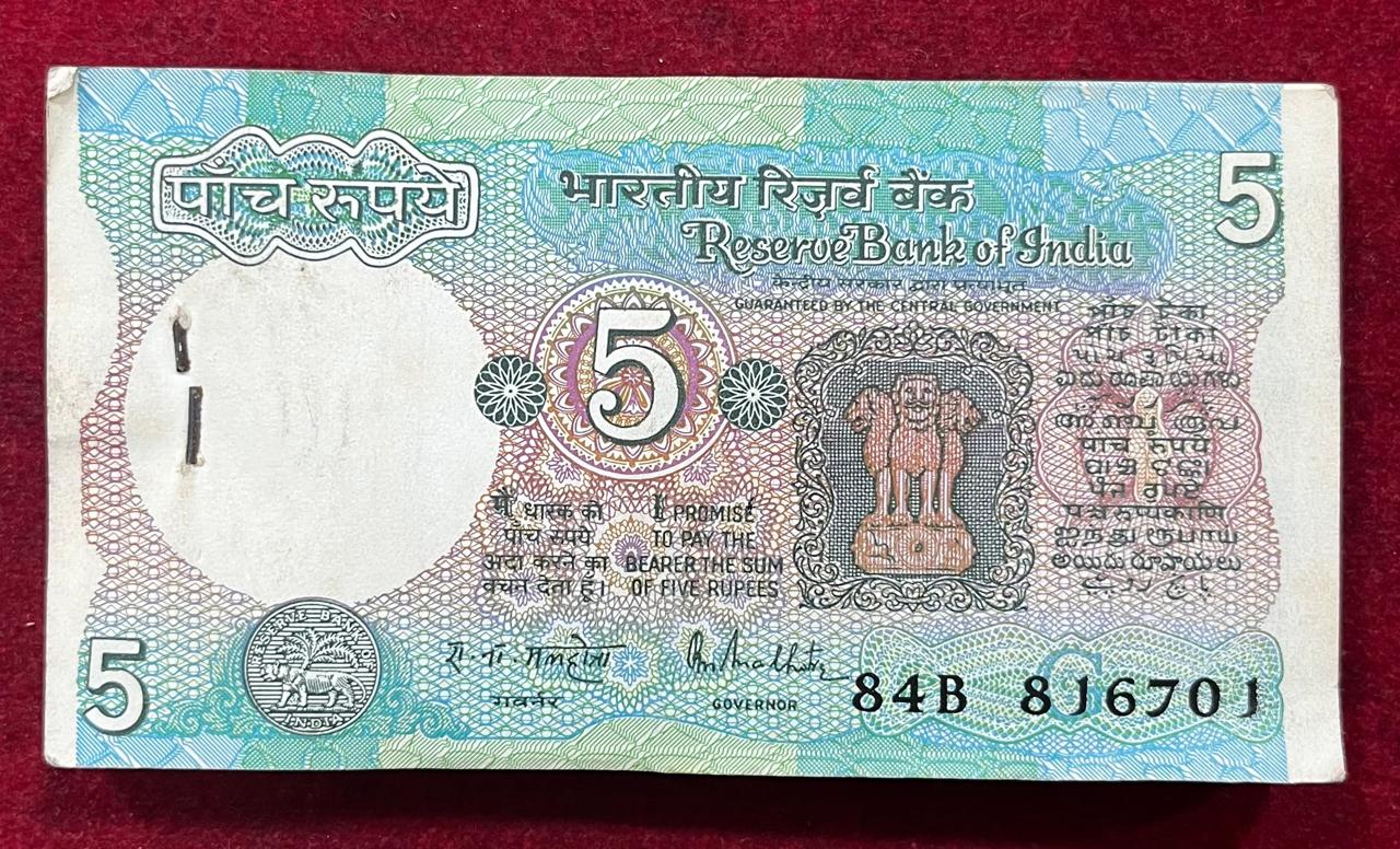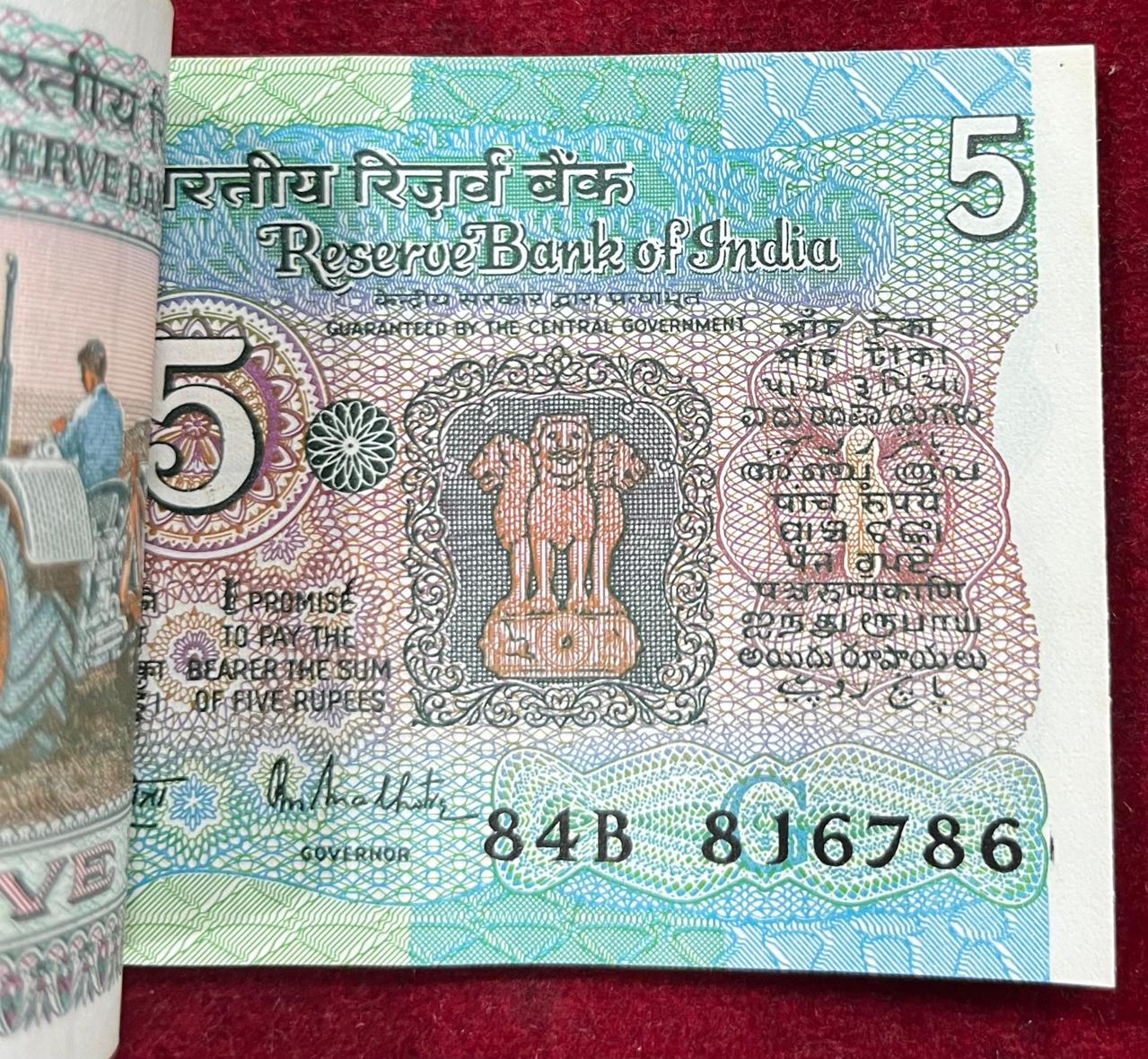 5 RUPEES TRACTOR ISSUE GOVERNOR R.N MALHOTRA RARE SERIAL PACKET WITH FANCY NUMBER ENDING 786 PACKET