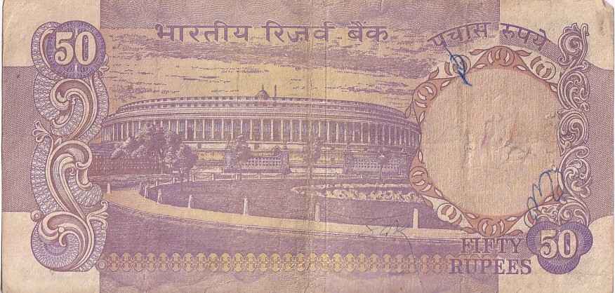 50 Rupees Without Flag Issue S Jagannathan Used Fine Note Rare #2