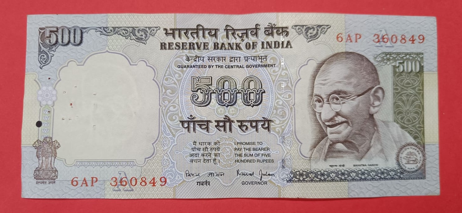 India 500 Rupees 2010 D Subbarao Extra Paper Error Note Ex Rare #1