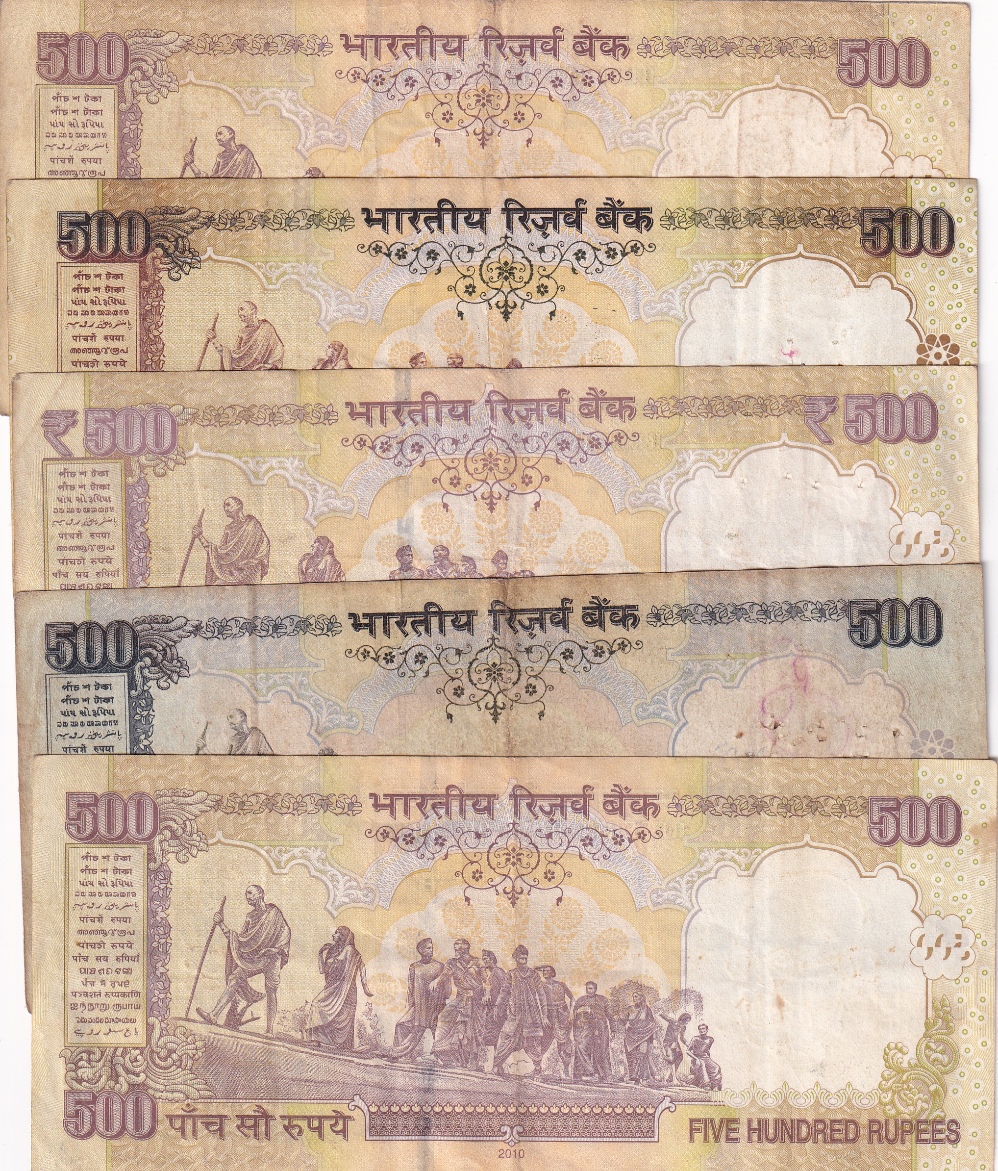 500 Rupees 5 Different Governor (5 Pcs Set ) Note