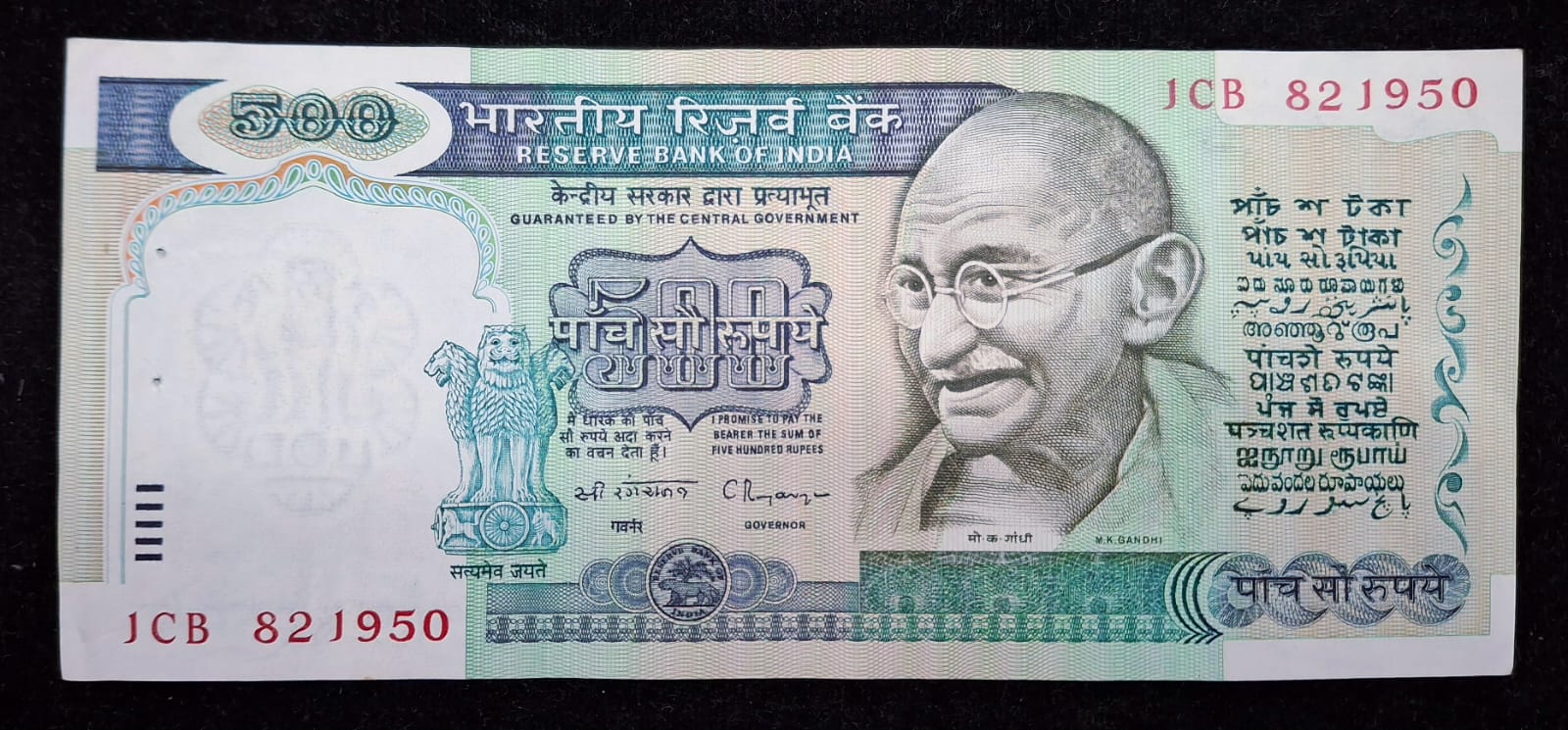 500 RUPEES DANDI GOVERNOR C.RANGARAJAN RARE ( U FOLD) ALMOST UNC NOTE