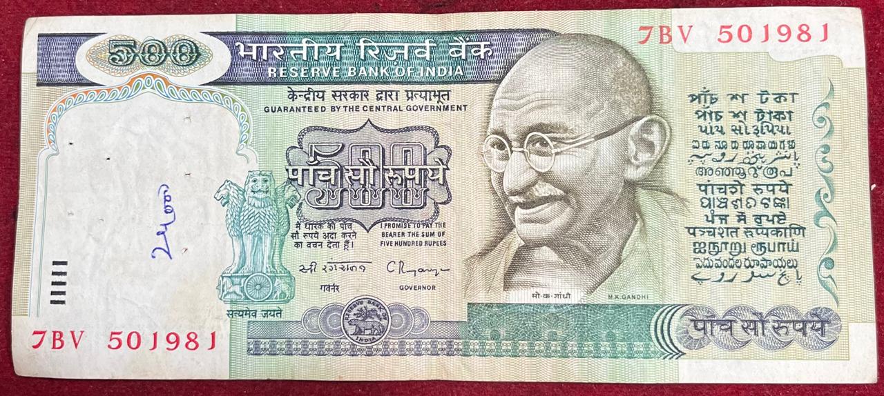 500 RUPEES DANDI ISSUE GOVERNOR C.RAGARAJAN RARE NOTE