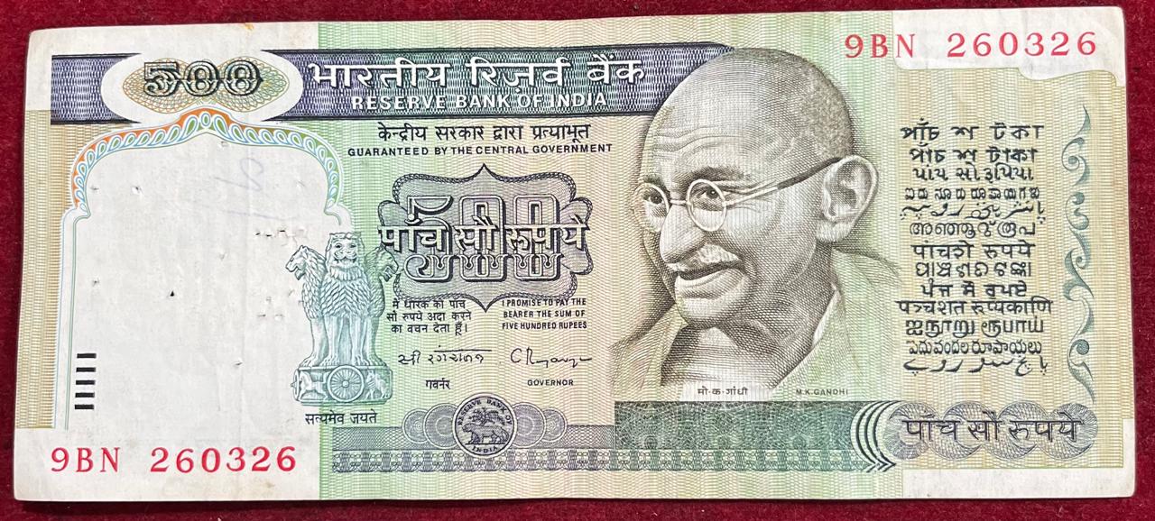 500 RUPEES DANDI ISSUE GOVERNOR C.RAGARAJAN RARE NOTE
