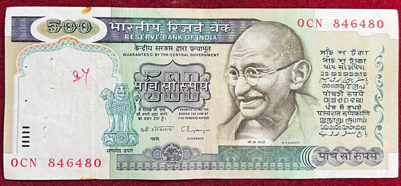 500 RUPEES DANDI ISSUE GOVERNOR C.RAGARAJAN RARE NOTE