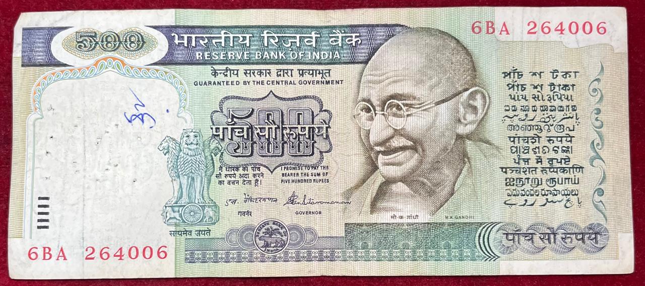 500 RUPEES DANDI ISSUE GOVERNOR S. VENKATARAMAN RARE NOTE