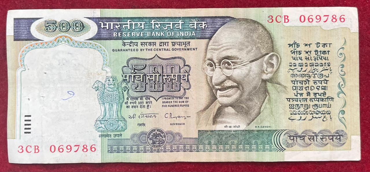 500 RUPEES FIRST ISSUE GOVERNOR C.RAGA RAJAN FANCY NUMBER ENDING 786