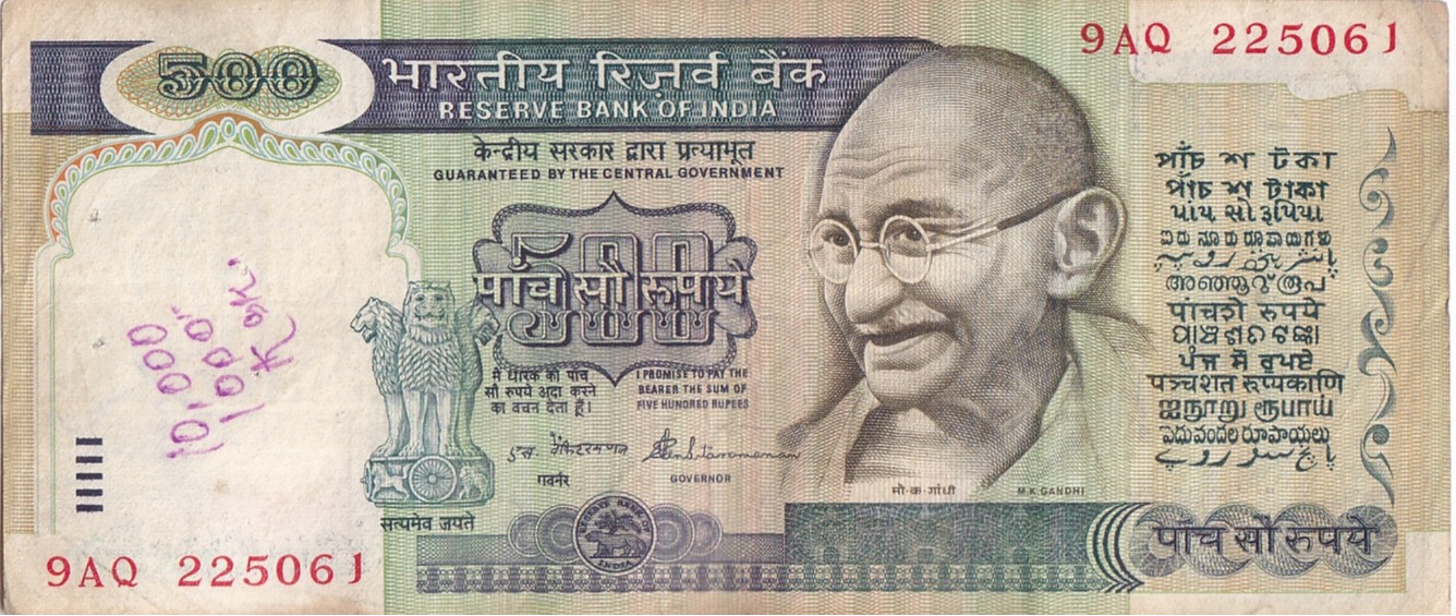 500 Rupees of S Venkataraman Second Issue Very Fine Condition Note #2