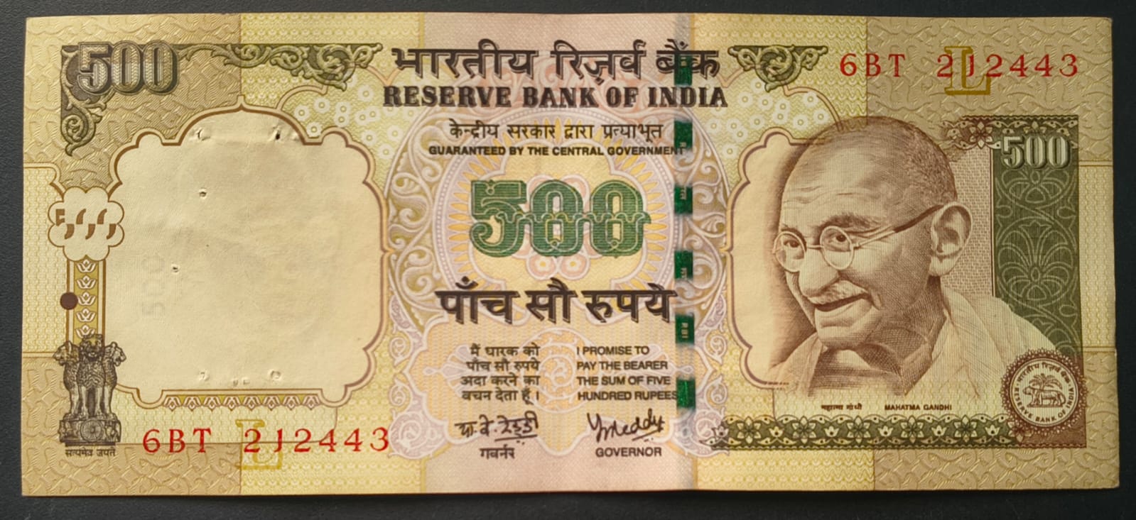 500 RUPEES (L INSERT 2007 ) GOVERNOR Y.B REDDY TOP CONDITION RAE NOTE