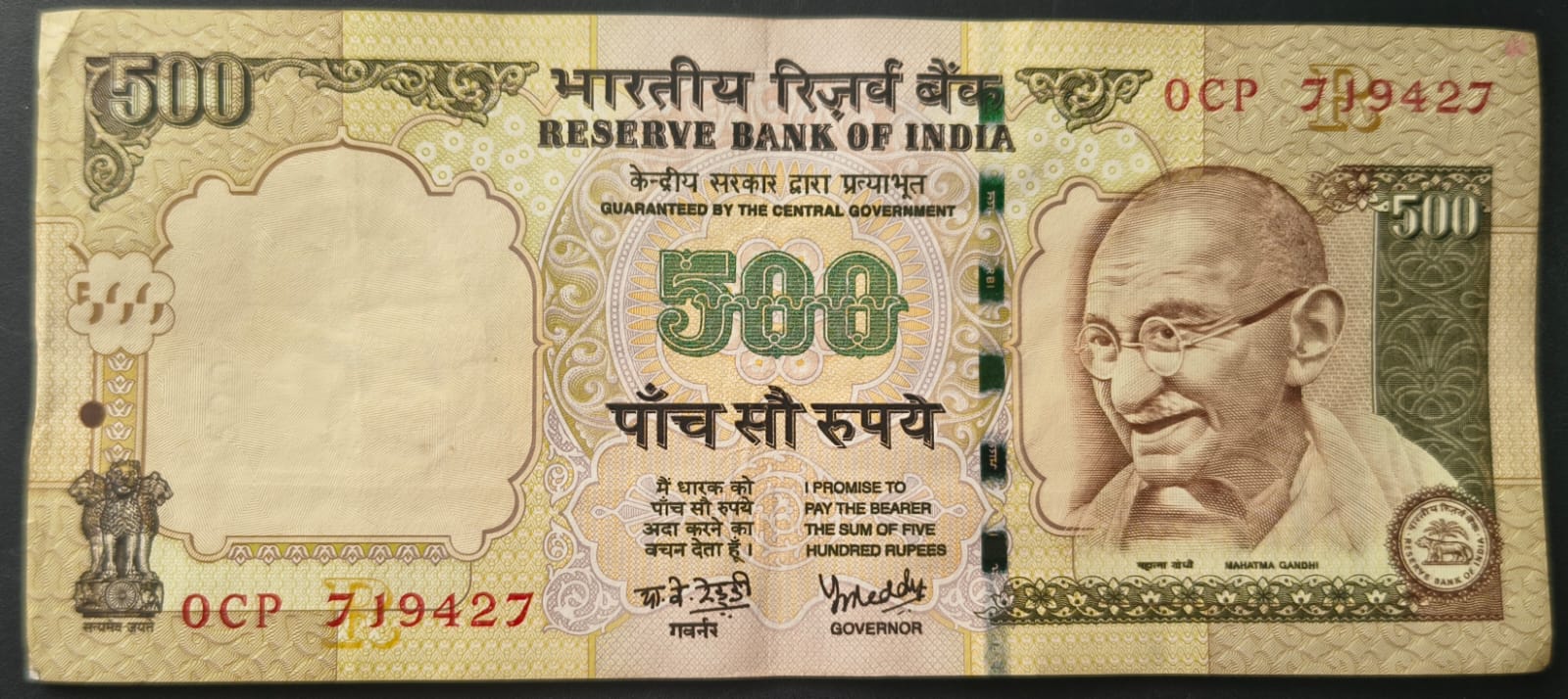 500 RUPEES (R INSERT 2006 ) GOVERNOR Y.B REDDY TOP CONDITION RAE NOTE