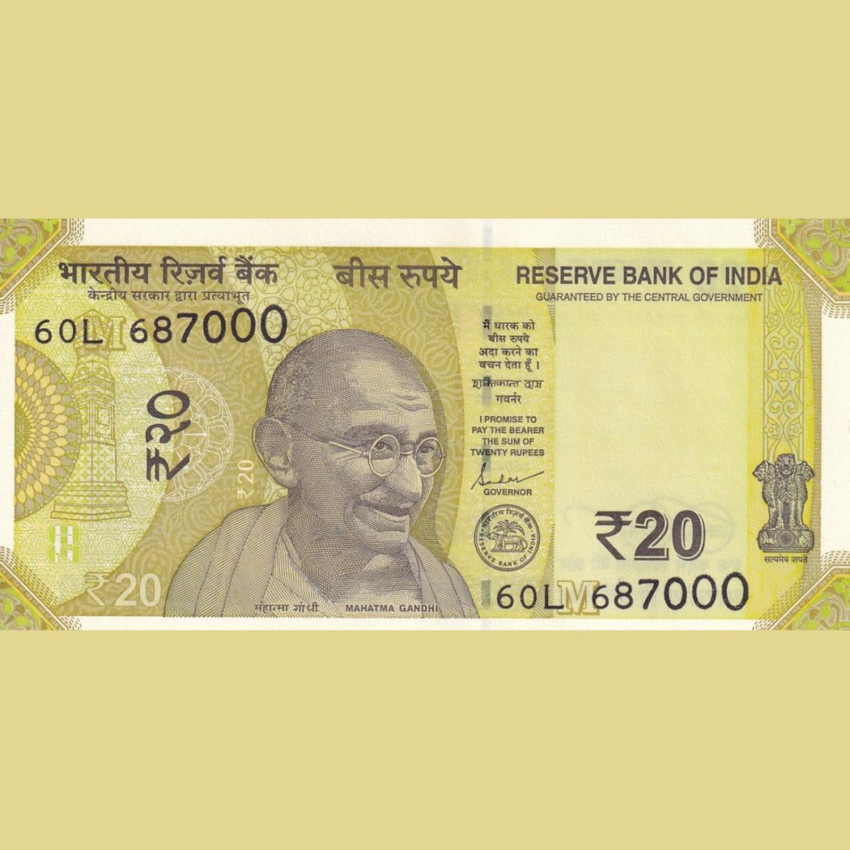 ✨ Rare 20 Rupees UNC banknote with fancy number 786000
