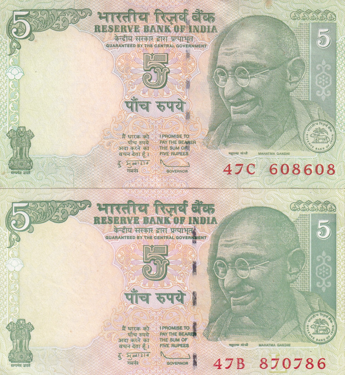 786 FANCY Doubling NUMBER 5 RUPEES (2 Pcs UNC RARE SET)