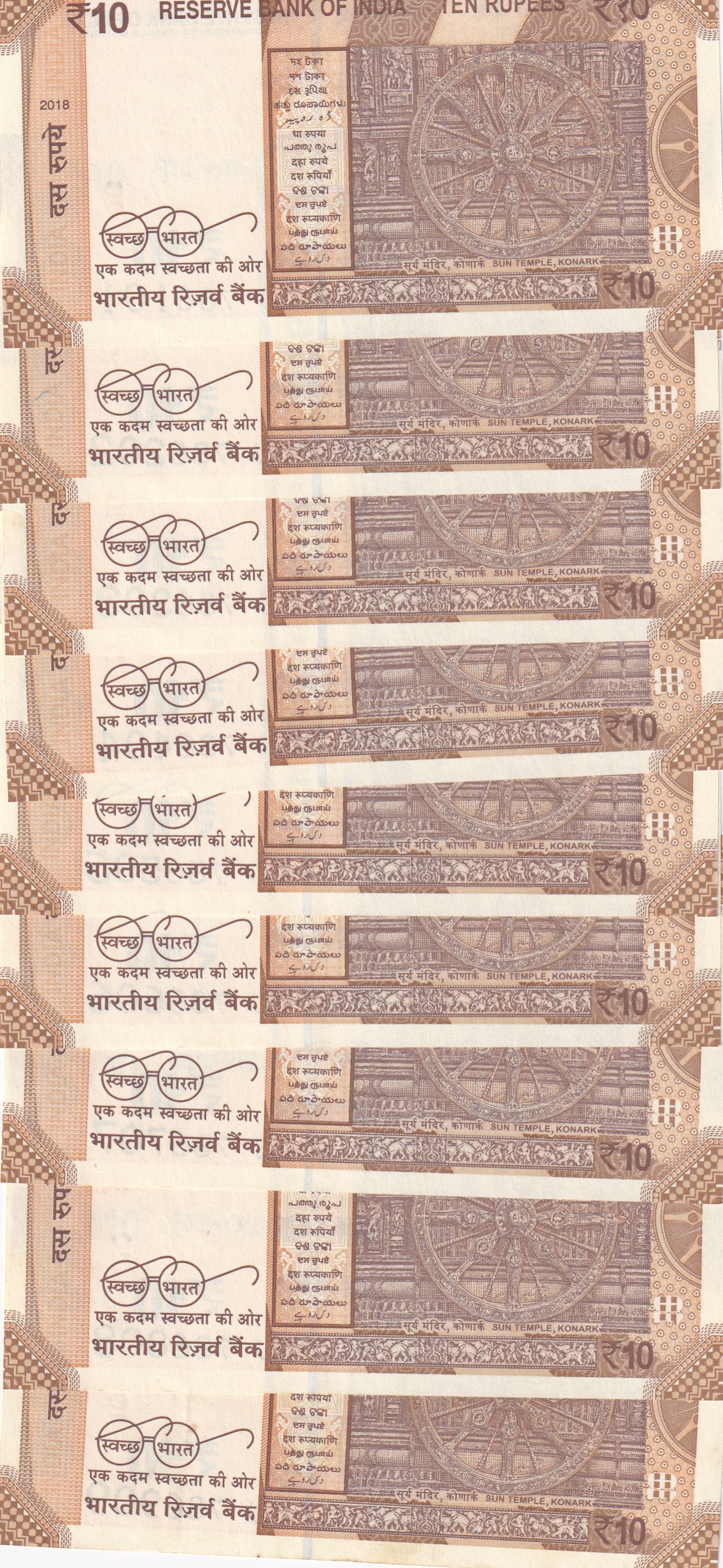 786101-786909 FANCY NUMBER 10 RUPEES GEM UNC RARE ( 9 NOTE SET )