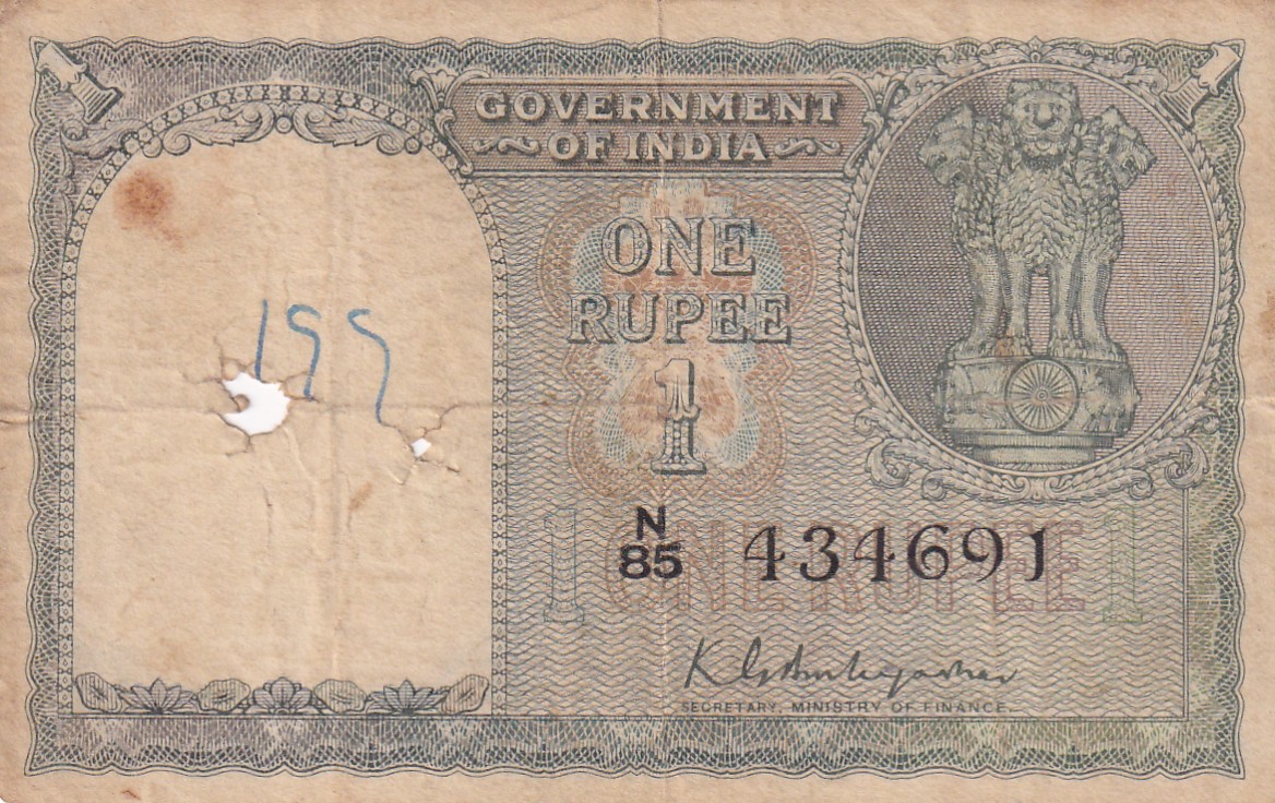 A-2 K.G AMBEGAONKAR 1950 ONE RUPEES RARE NOTE