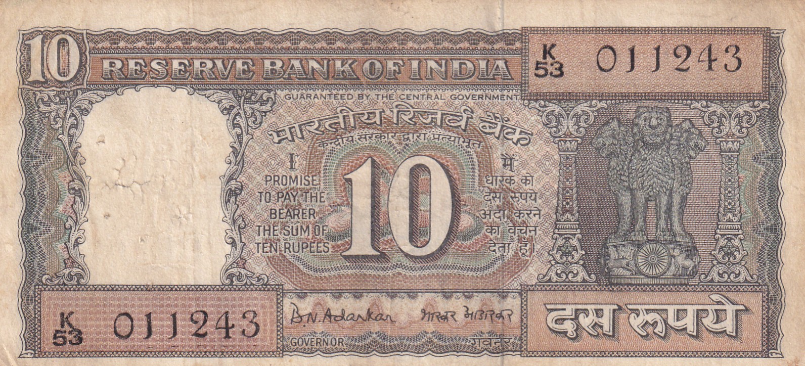 B.N ADARKAR TEN RUPEES GANDHI 10 RUPEES GOOD CONDITION NOTE