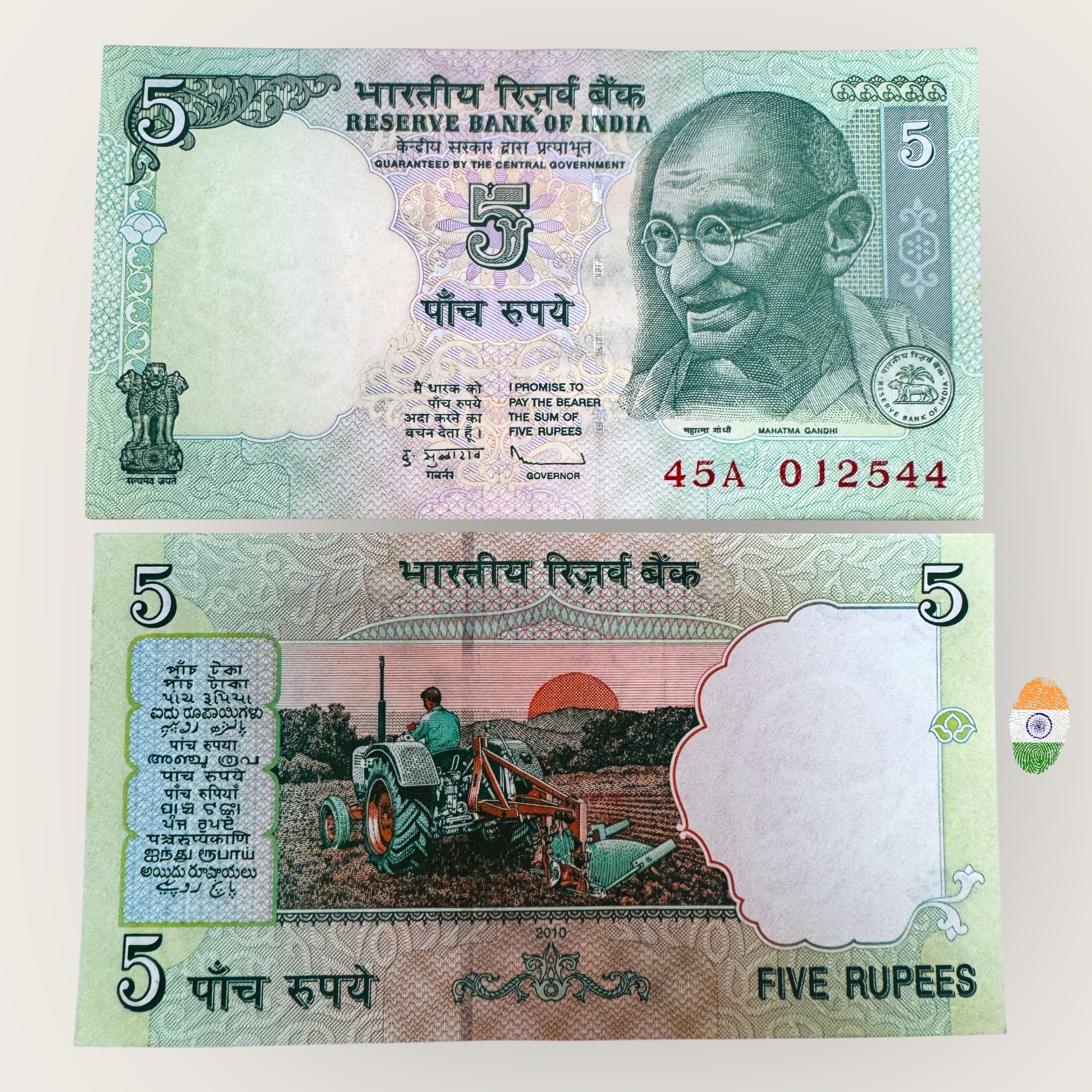 C 43 Rs 5 India Banknote Signature series Signed by D Subharao Inset Plain 2010 Issue Unique and Rare