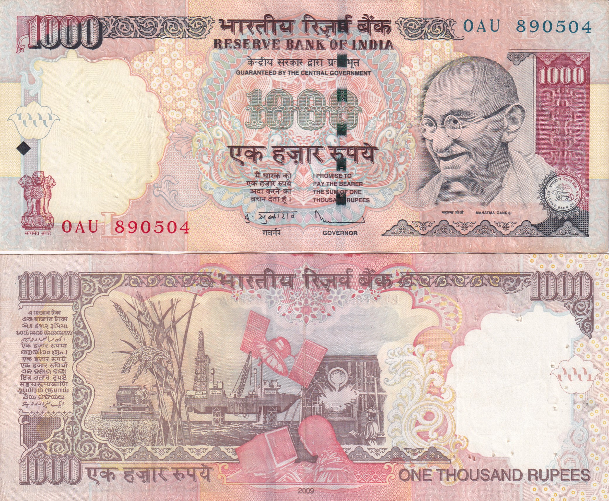 D.SUBBARAO (L INSERT 2009) 1000 Rupees Top condition Note without Pen Mark ; * *BUYER WILL RECEIVE DIFFERENT SERIAL NUMBER 1 NOTE* *
