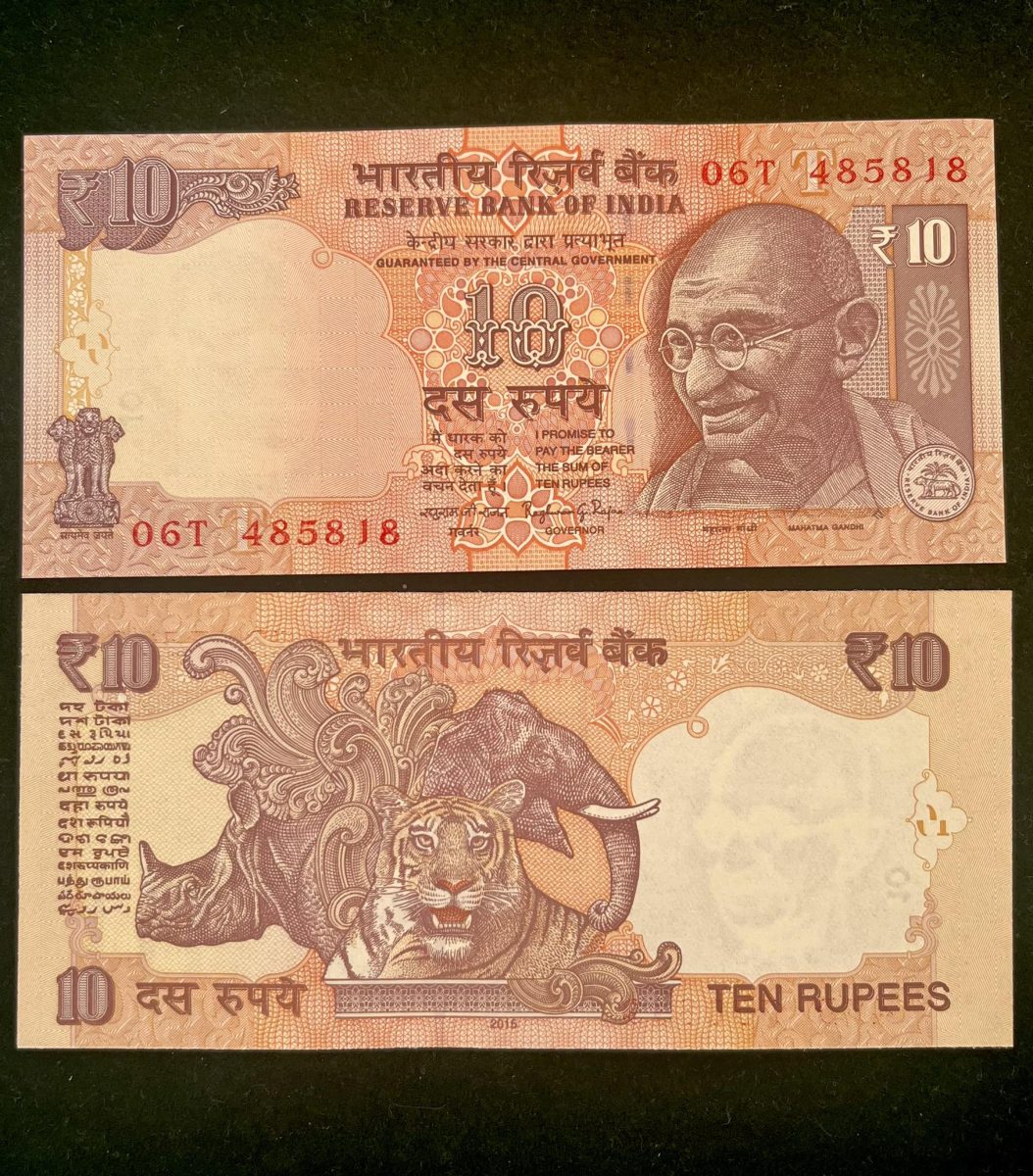 D118 – Rs 10 India Banknote Signature series Signed by RAGHURAM G RAJAN Inset T 2015 Issue