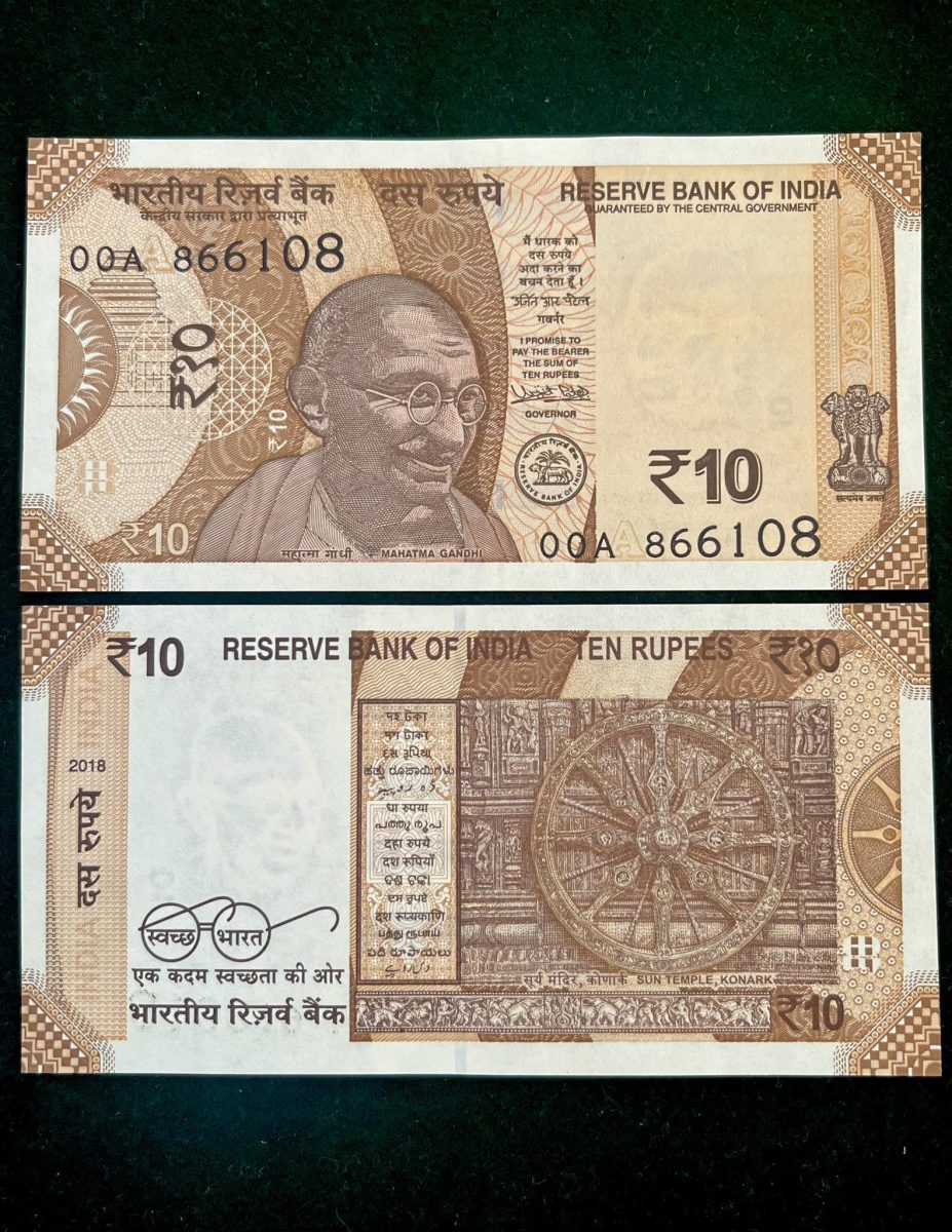 D134 – Rs 10 India Banknote Signature series Signed by URJIT R PATEL Inset A 2018 Issue