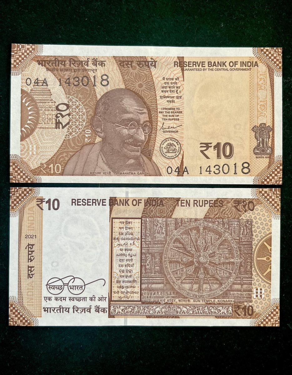 D142 – Rs 10 India Banknote Signature series Signed by SHAKTI KANTA DAS Inset PLAIN 2021 Issue