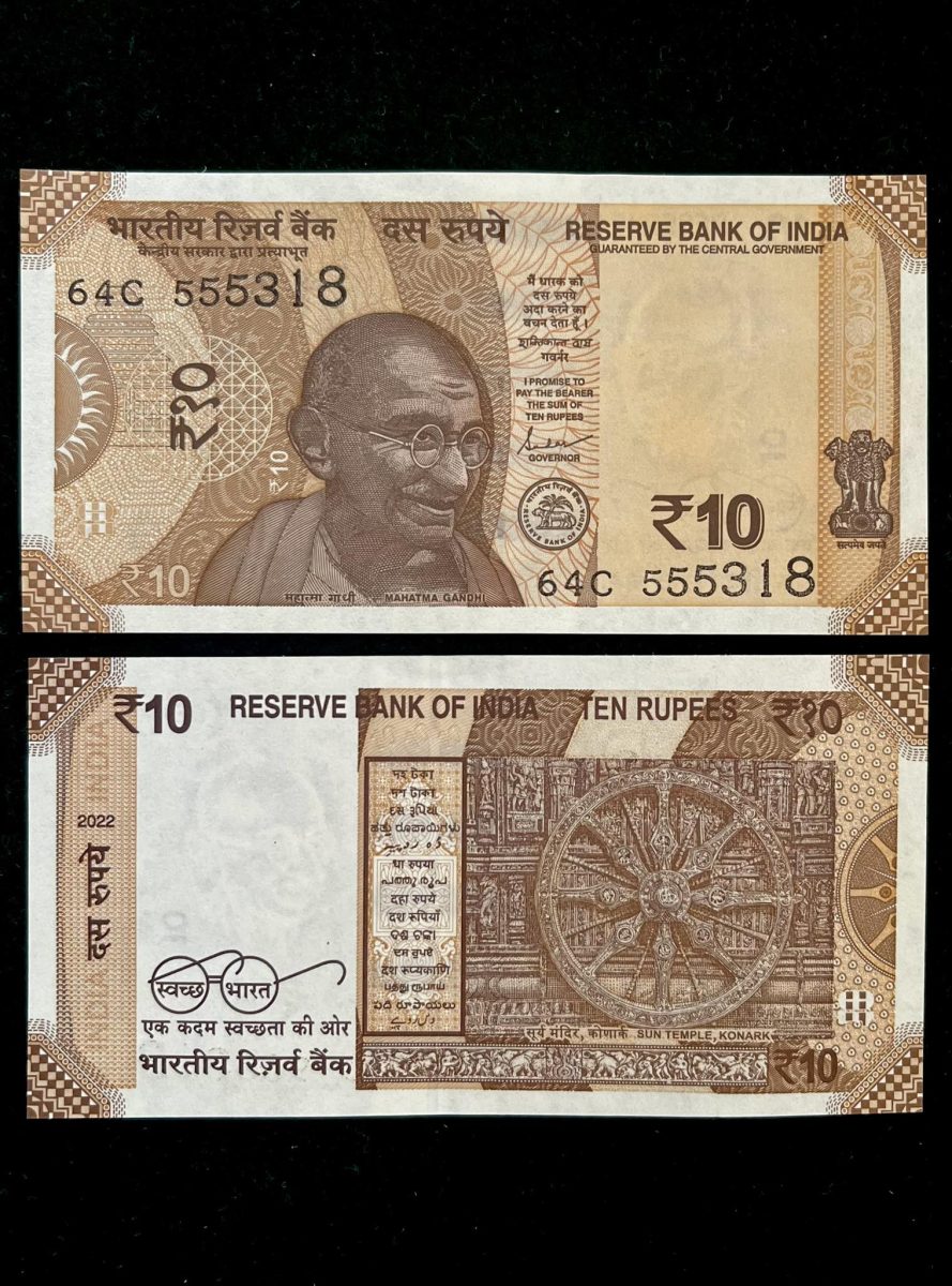 D145 – Rs 10 India Banknote Signature series Signed by SHAKTI KANTA DAS Inset PLAIN 2022 Issue