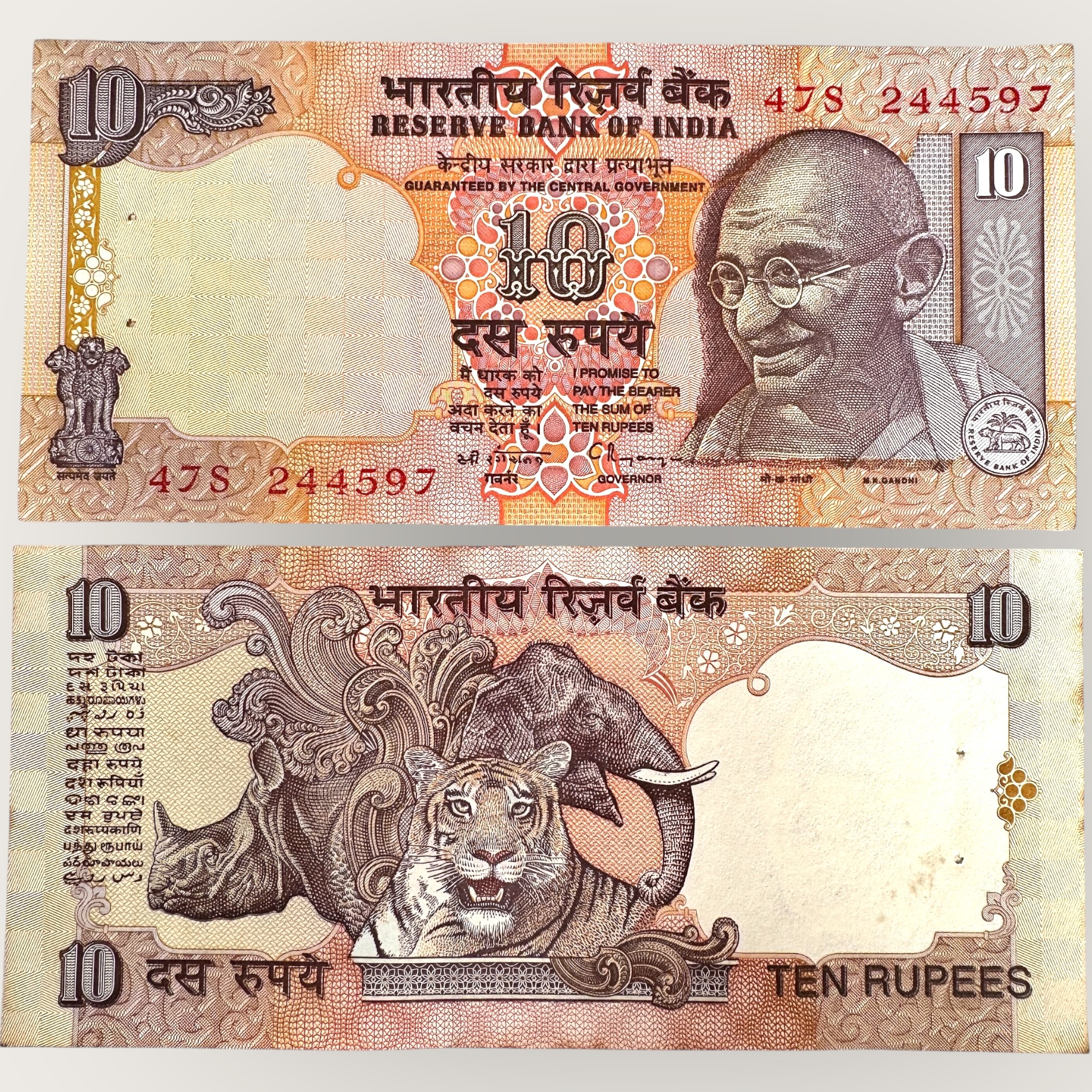 D46 – Rs 10 India Banknote Signature series Signed by C.RANGRAJAN Inset PLAIN 1997 Issue