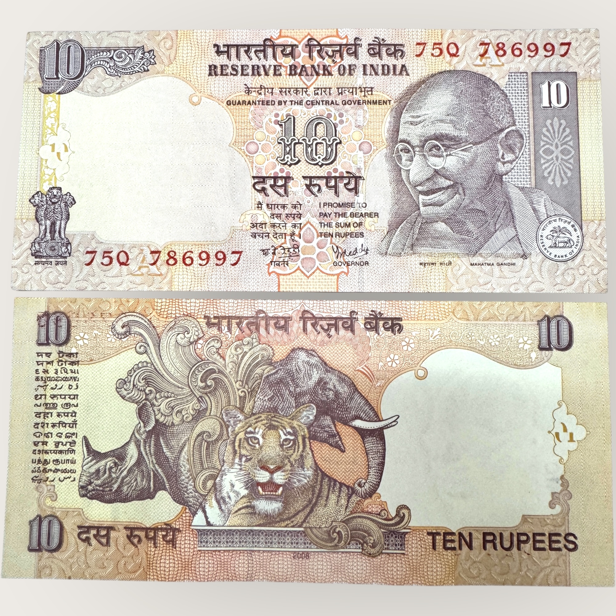 D 73 Rs 10 India Banknote Signature series Signed by Y V Reddy Inset A 2008 Issue Unc Unique and Rare