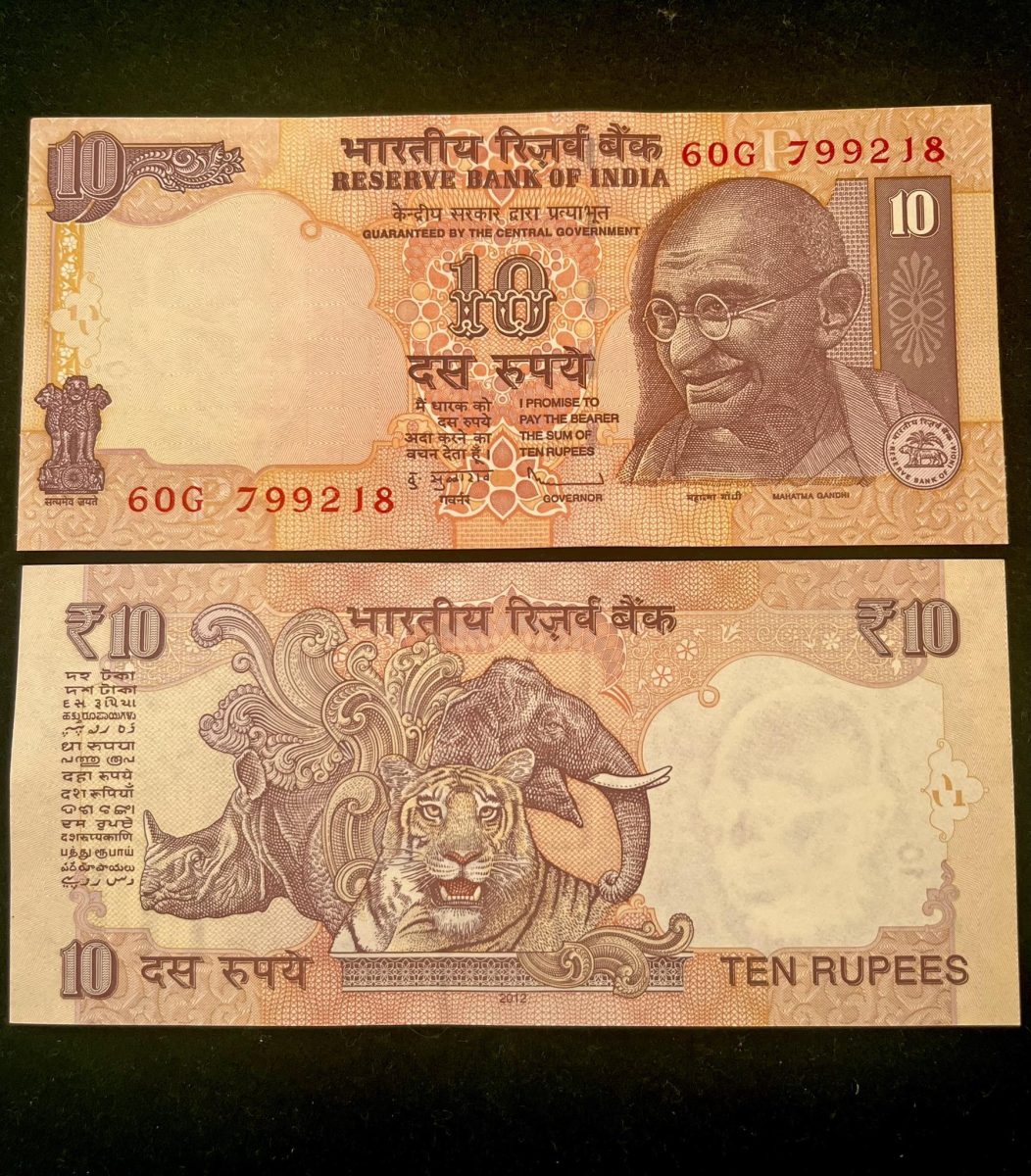 D94 – Rs 10 India Banknote Signature series Signed by D. SUBARAO Inset P 2012 Issue