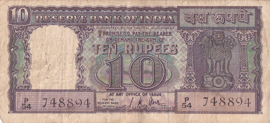 Diamond Issue 10 Rupees L KJHA Signature Very Fine Note Old Issue