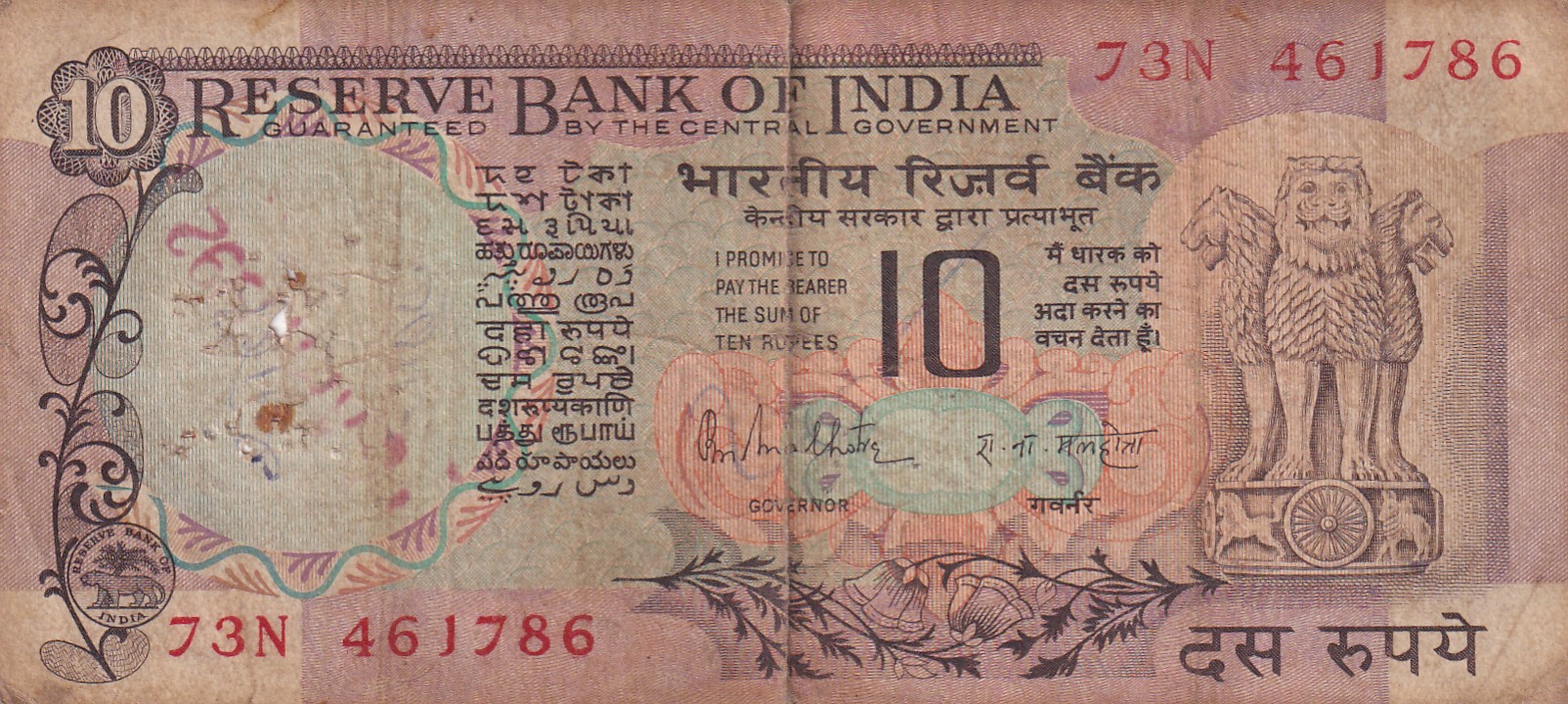 ENDING 786 FANCY NUMBER 10 RUPEES GOVERNOR R.N MALHOTRA RARE NOTE