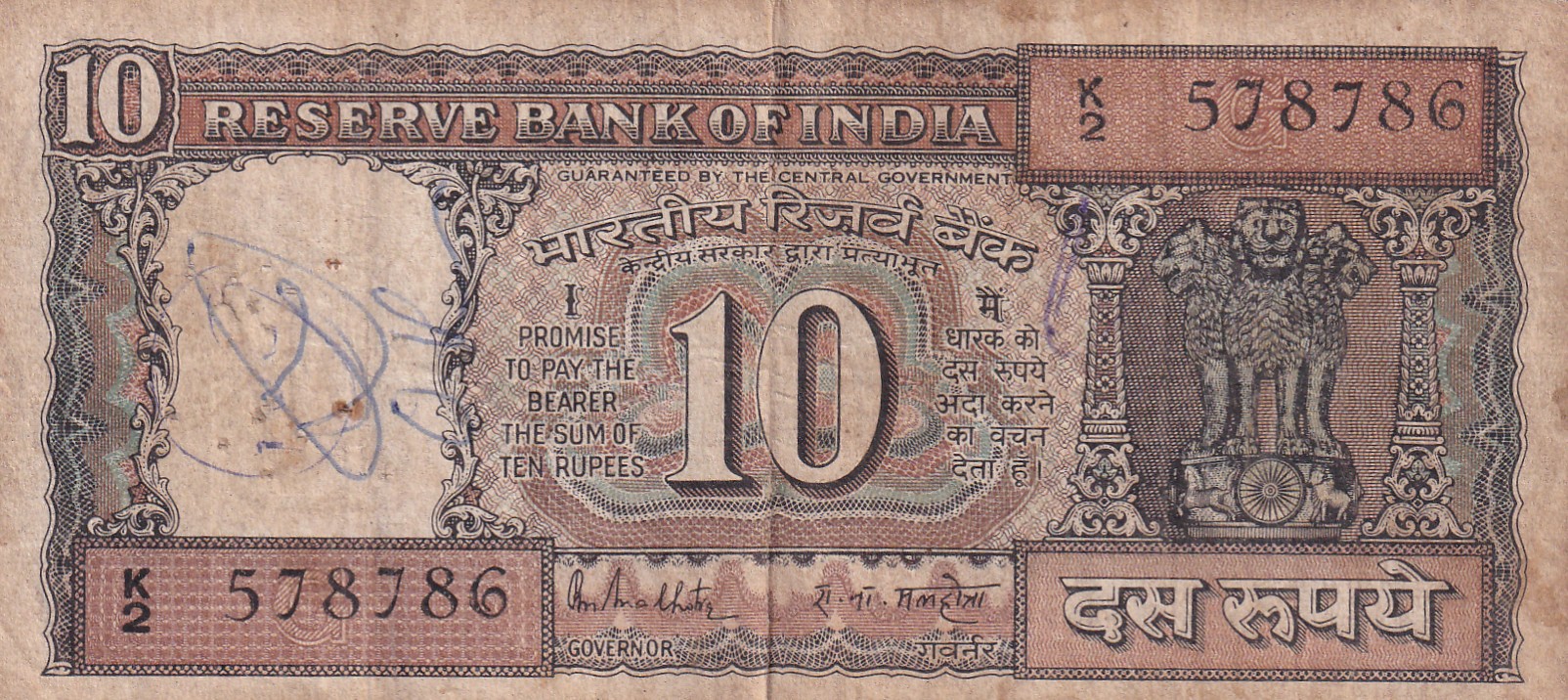 ENDING 786 FANCY NUMBER 10 RUPEES GOVERNOR R.N MALHOTRA RARE NOTE