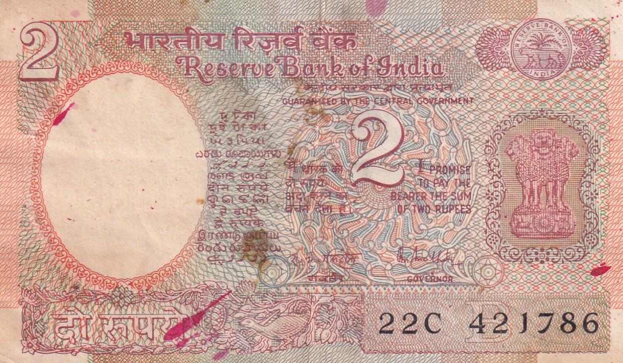 ENDING 786 FANCY NUMBER TWO RUPEES (SATELLITE) GOVERNOR R.N MALHOTRA RARE NOTE