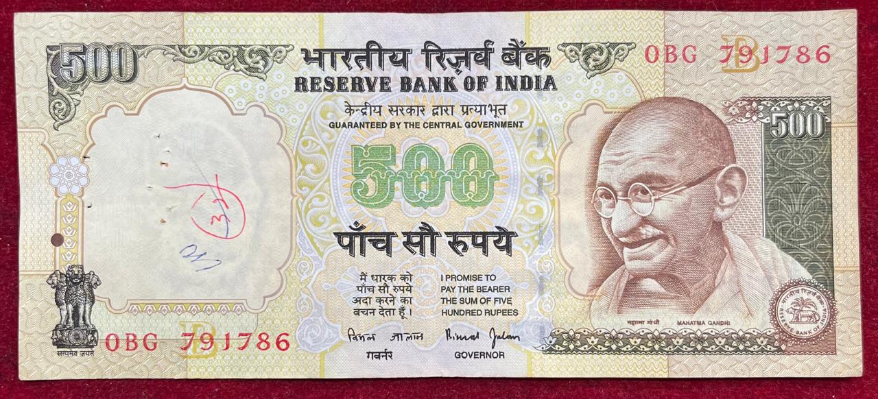 FANCY NUMBER ENDING ( 786) 500 RUPEES GOVERNOR BIMAL JALAN ( B INSERT ) RARE NOTE