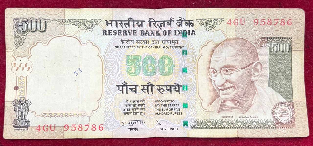 FANCY NUMBER ENDING ( 786) 500 RUPEES GOVERNOR D. SUBBA RAO ( PLAIN INSERT ) RARE NOTE