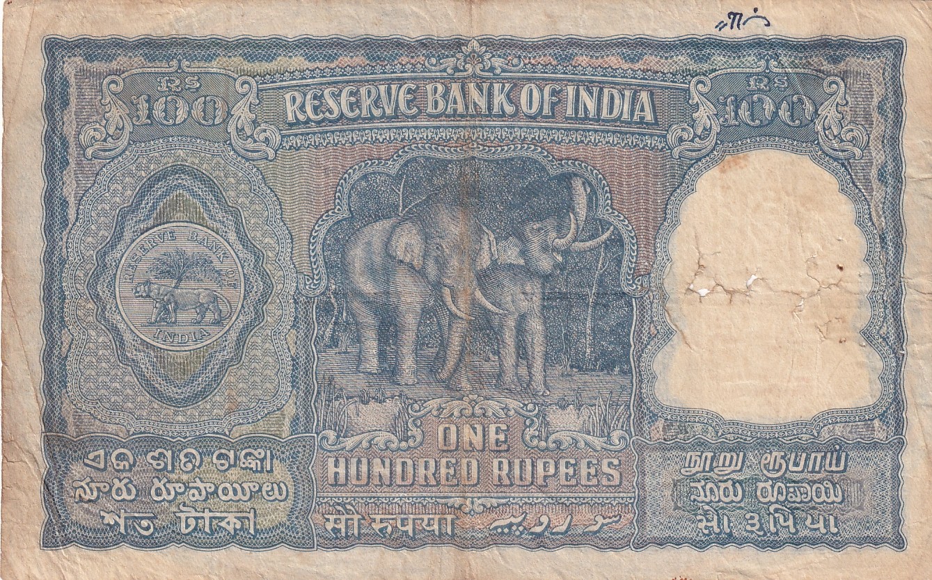 First Issue of India 100 Rupees B RAMA RAO Big Size Elephant Issue Note Ex Rare