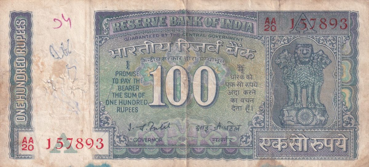 I.J.Patelย ย 100 Rupees Old issue White Patti Note Buyer will receive same Note as per Image