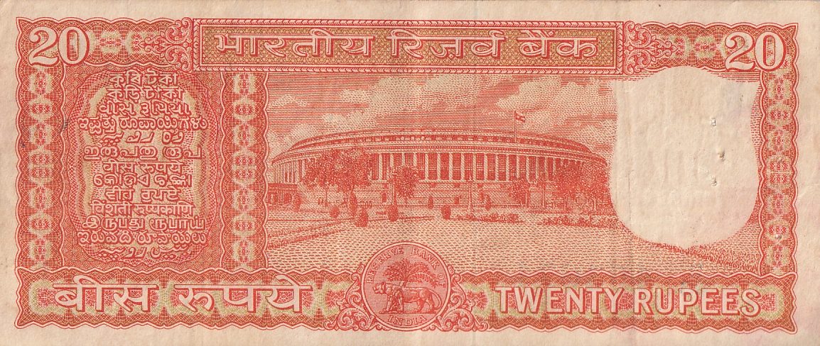 India 20 Rupees Orange Color Parliament Issue Old Note #4