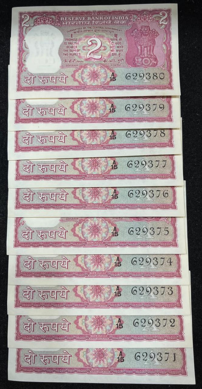 K.R PURI 2 RUPEES OLD ISSUE GEM UNC ( 10 PCS SERIAL NOTE )
