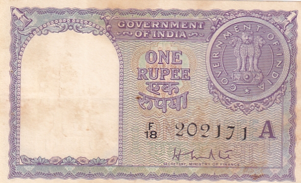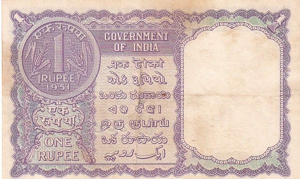 One Rupee 1951 HM PATEL Signature Very Rare Extra Fine Stain Marks Note #1