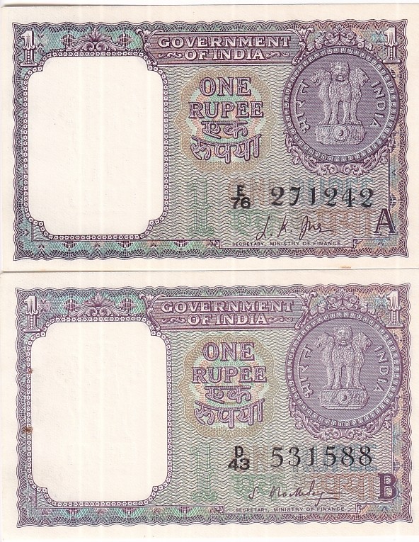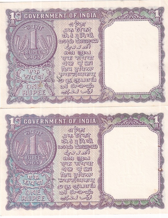 One Rupee 1963 and 1965 L K Jhaand S Bhootlingam Two Unc Notes Set
