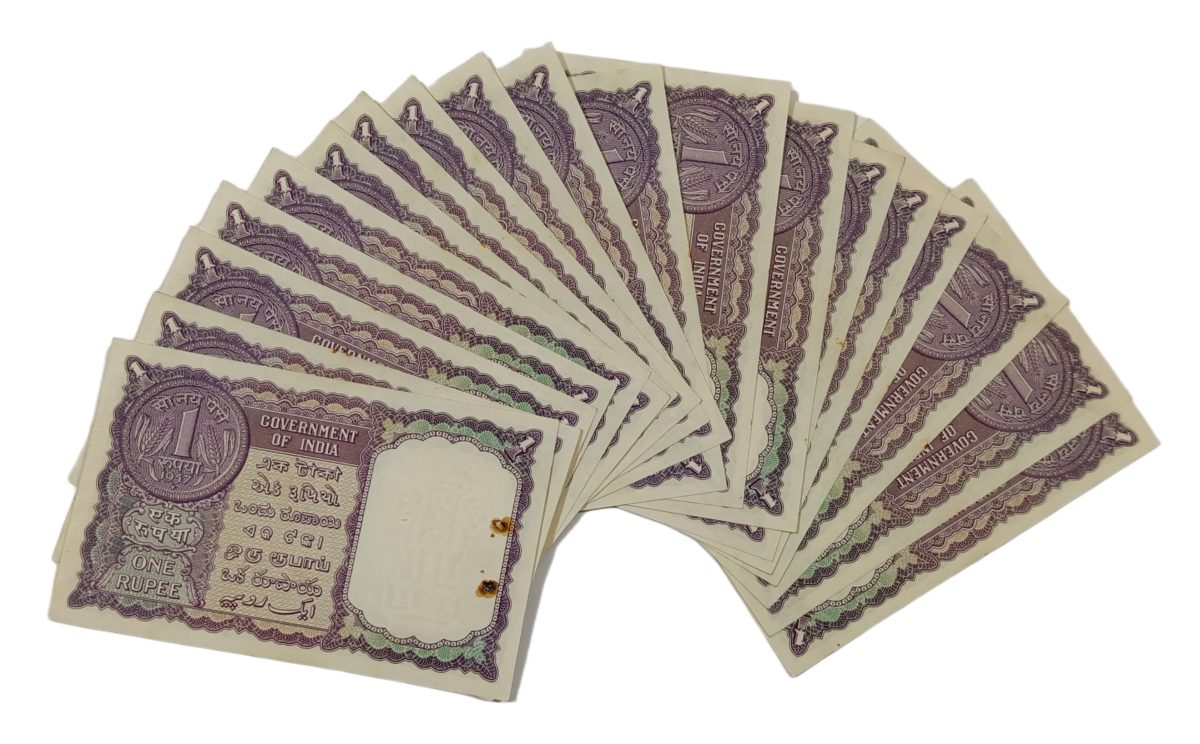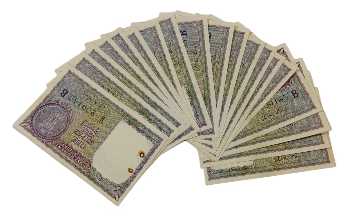 One Rupee Old Issue Year 1957 Signature A.K ROY Serially 19 Notes are in Crisp UNC Grades Except Pin Holes.