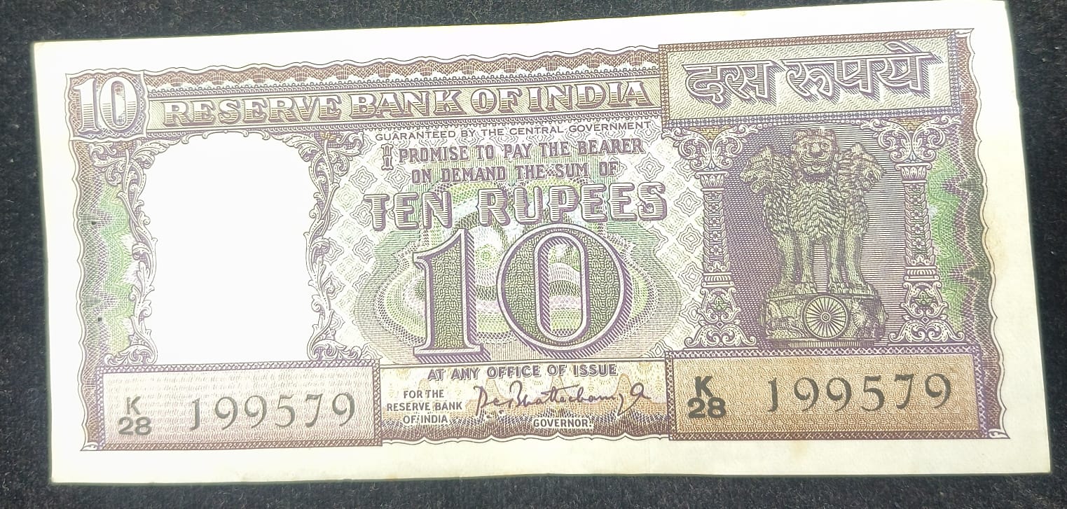 P.C. BHATTACHARY 10 RUPEES DIAMOND ISSUE RARE OLD NOTE#SKU-53)